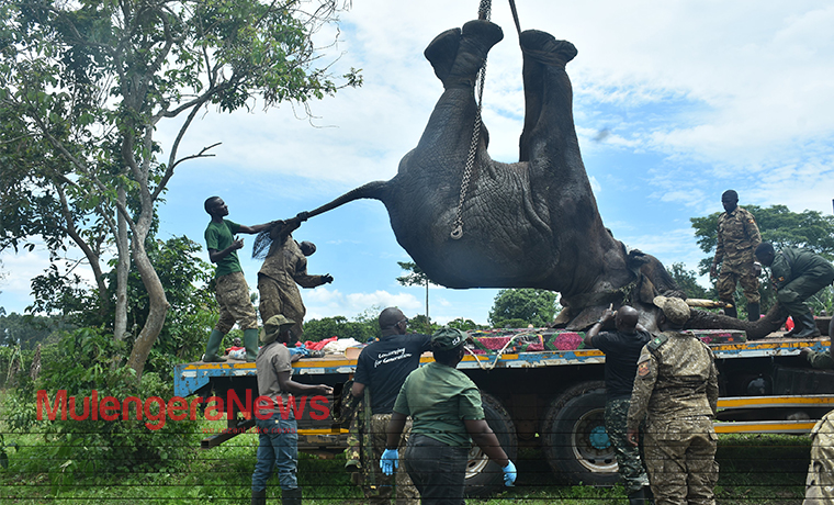 The male elephant, weighing a massive 3,496 kilograms and believed to be about 20 years old, had been roaming freely in villages after straying from the national park in September 2025. During that time, it repeatedly invaded farms, destroying crops such as maize, bananas, cassava, pumpkins, and watermelons — key sources of food and income for local families.