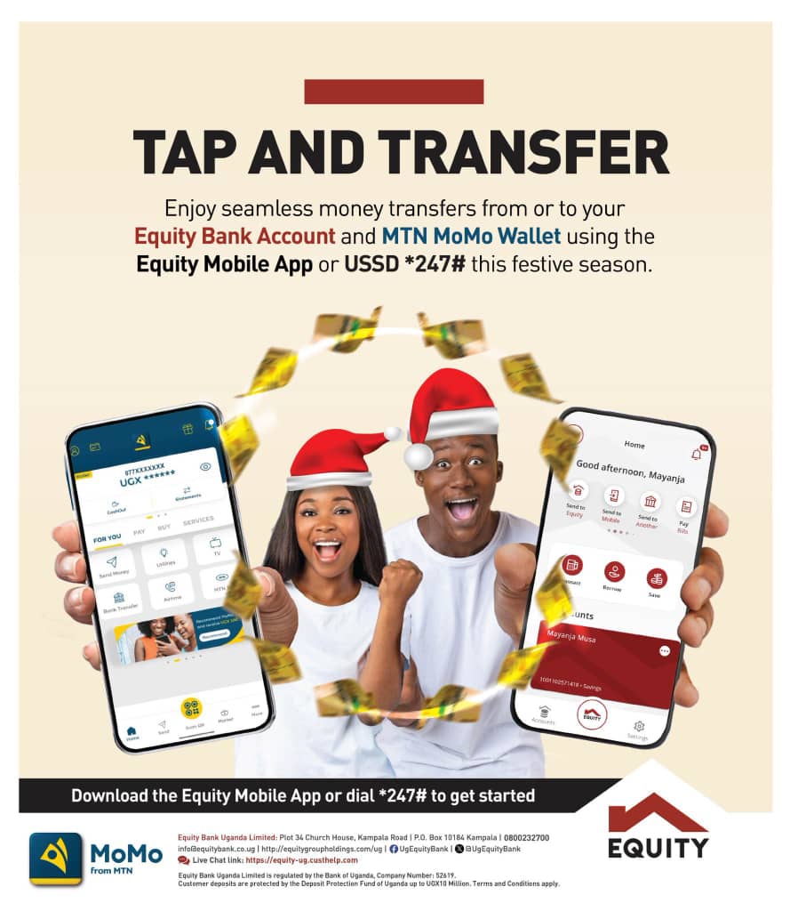 A festive-season campaign has been unveiled by Equity Bank Uganda, encouraging customers to make fast, secure and convenient money transfers between their Equity Bank Accounts and MTN MoMo Wallets.