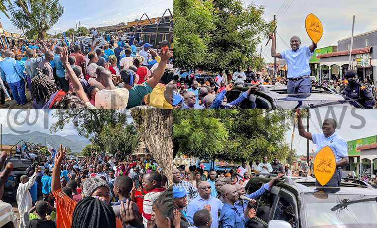 At every stop, people filled the roads, cheering and singing. Some waved tree branches in the air. Others ran beside his car, shouting his name. At Kyarumba playground, it felt like the whole district had gathered. Faces young and old looked up at the stage with hope.