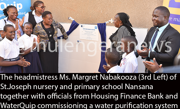 Access to safe and clean water has been improved through a collaboration between Housing Finance Bank (HFB) and WaterQuip Uganda Limited, with the installation of a water purification system installed at St. Joseph’s Nursery and Primary School in Nansana.