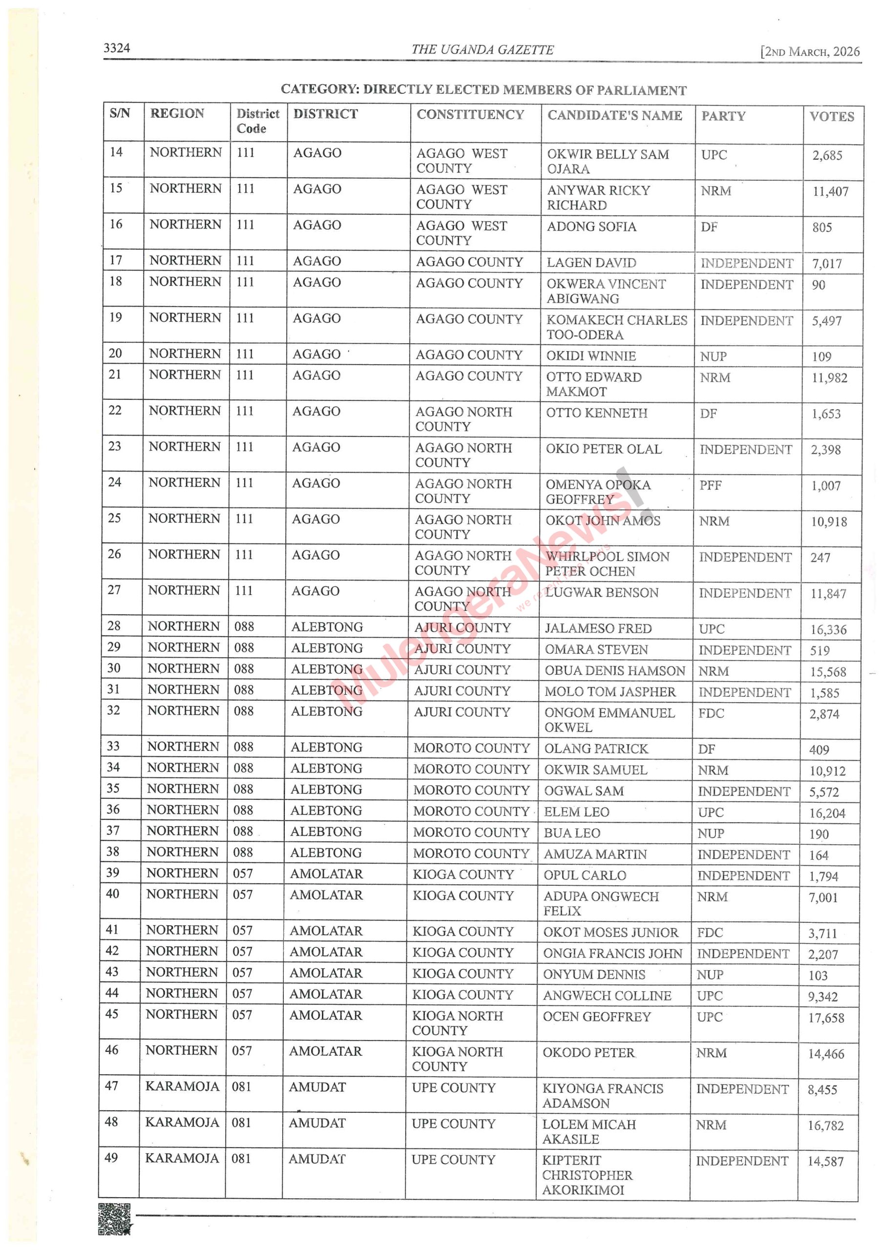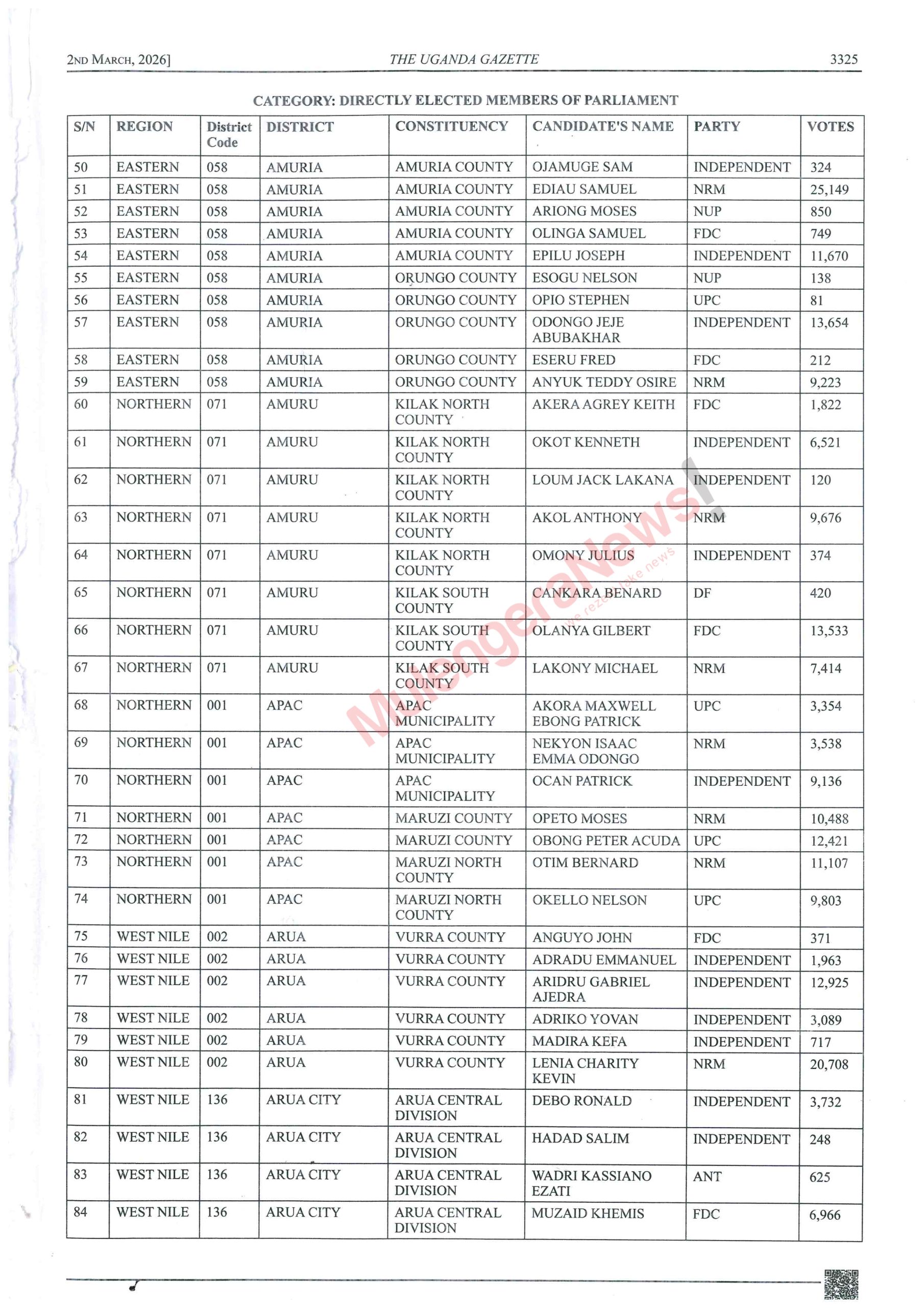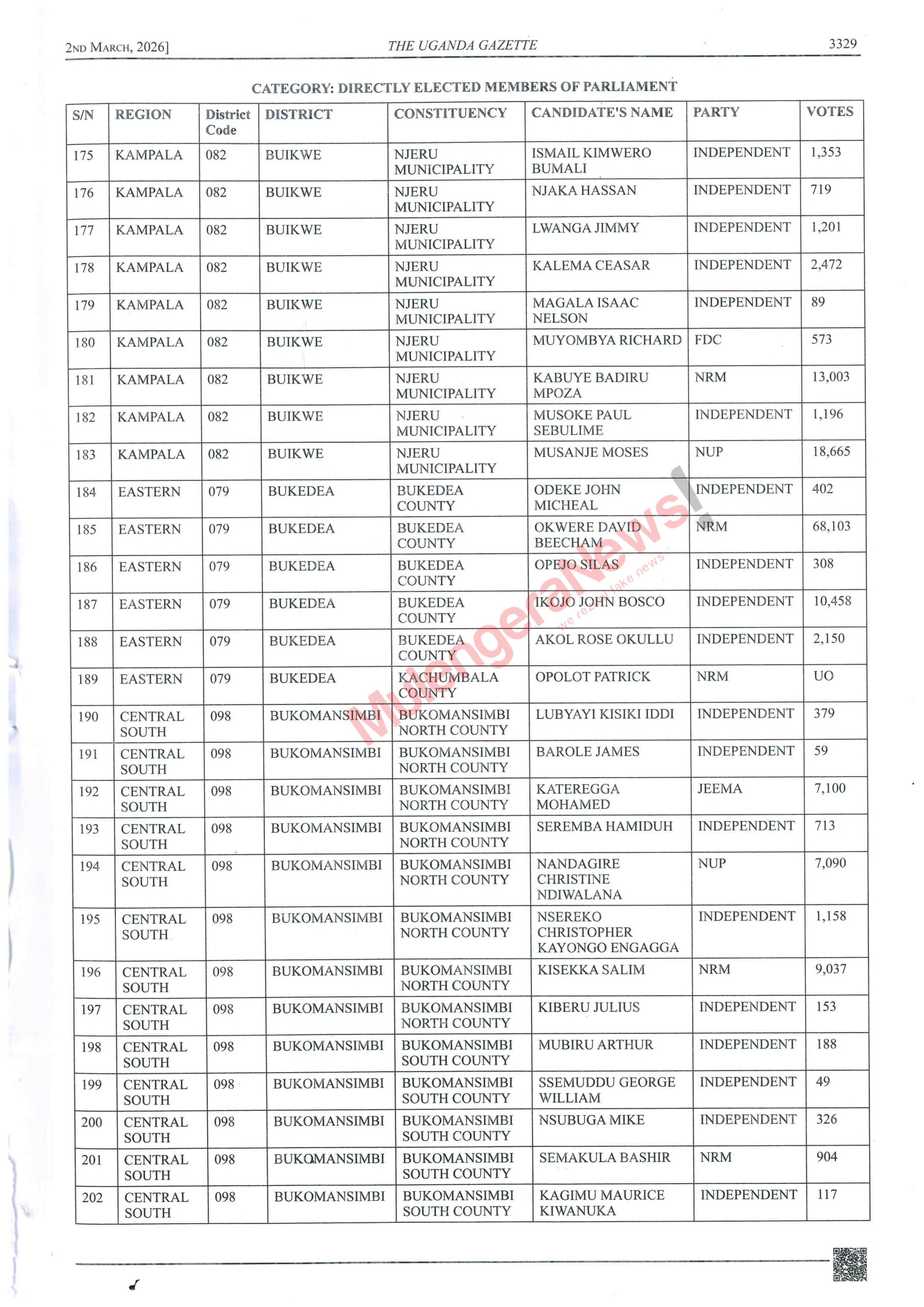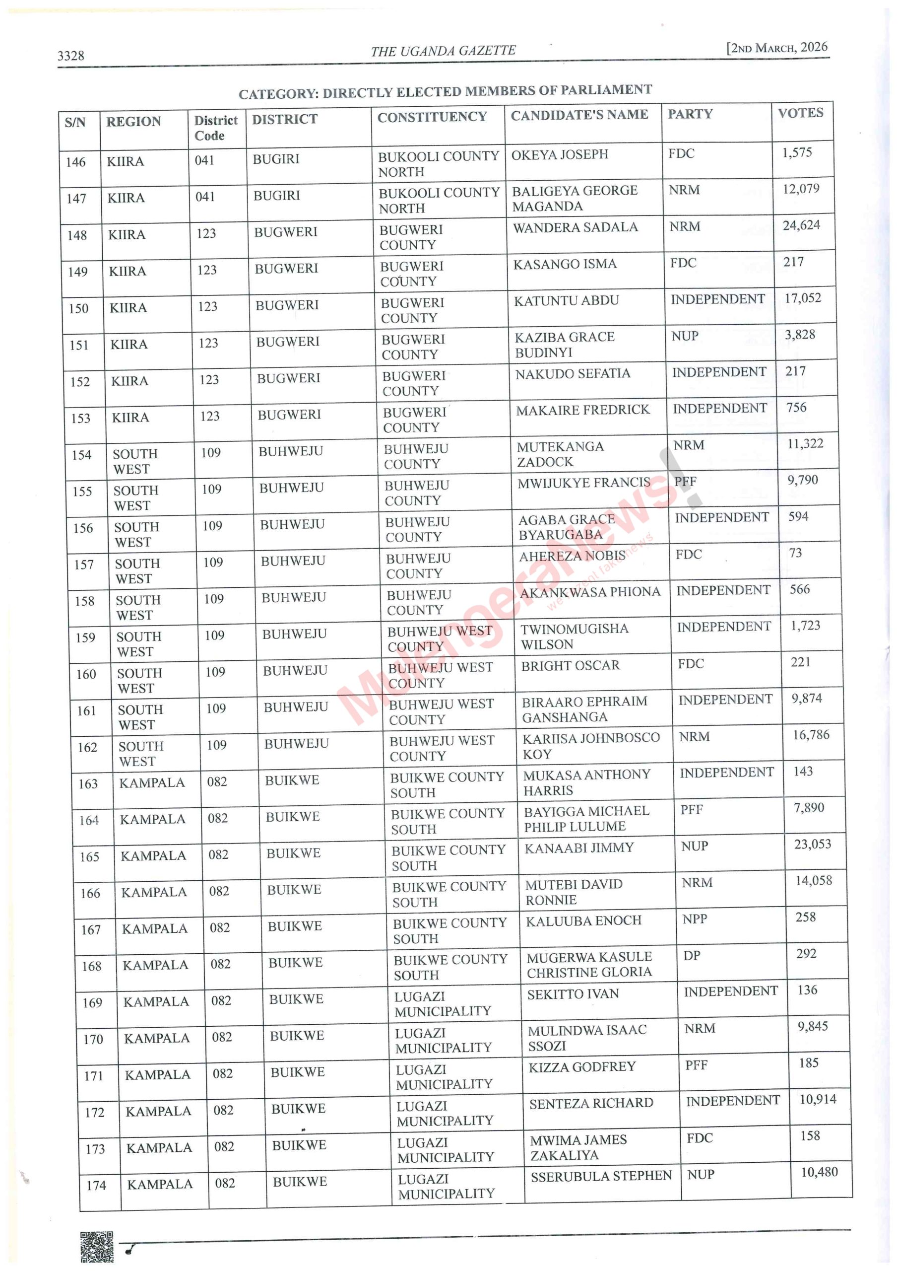 Let’s peruse the lists and know who won narrowly and those who lost narrowly. There are some contestants like Kalungu West’s Joseph Sewungu who won with a margin of as low as 26 votes. Equally true, there are candidates who lost and were beaten with a vote difference of as low as 10 votes. It hurts but it happens. Let’s acquaint ourselves with such details and much more by accessing the contents of the latest Gazette by perusing this story.