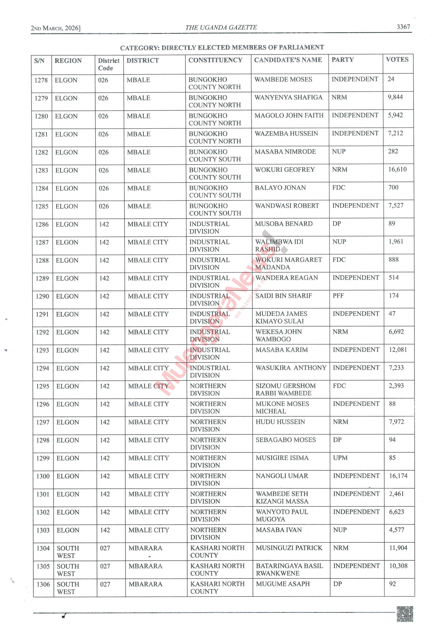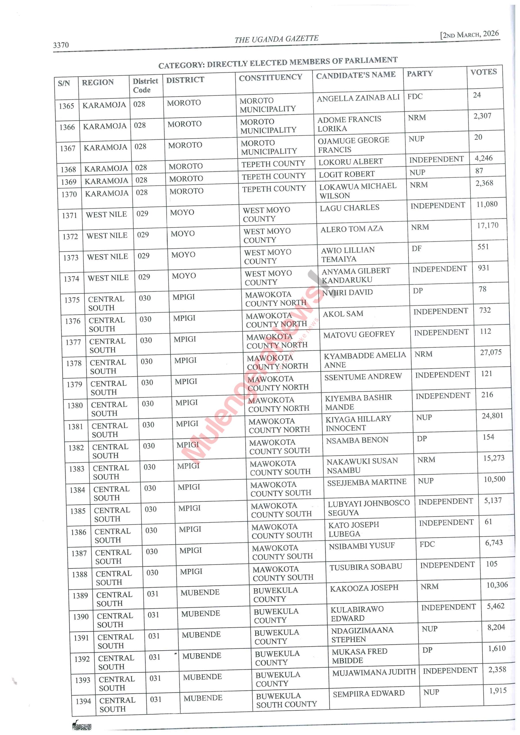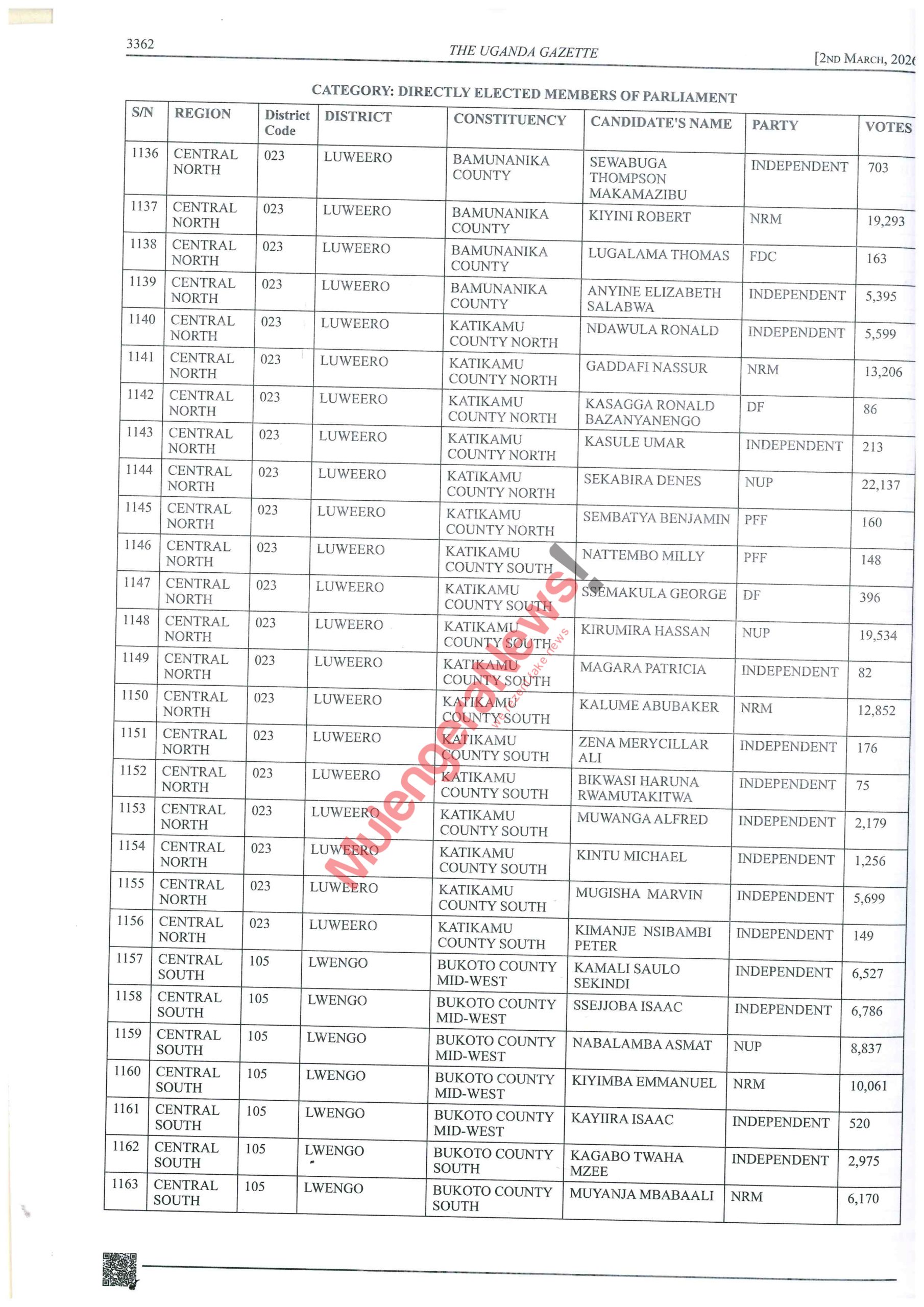 Let’s peruse the lists and know who won narrowly and those who lost narrowly. There are some contestants like Kalungu West’s Joseph Sewungu who won with a margin of as low as 26 votes. Equally true, there are candidates who lost and were beaten with a vote difference of as low as 10 votes. It hurts but it happens. Let’s acquaint ourselves with such details and much more by accessing the contents of the latest Gazette by perusing this story.