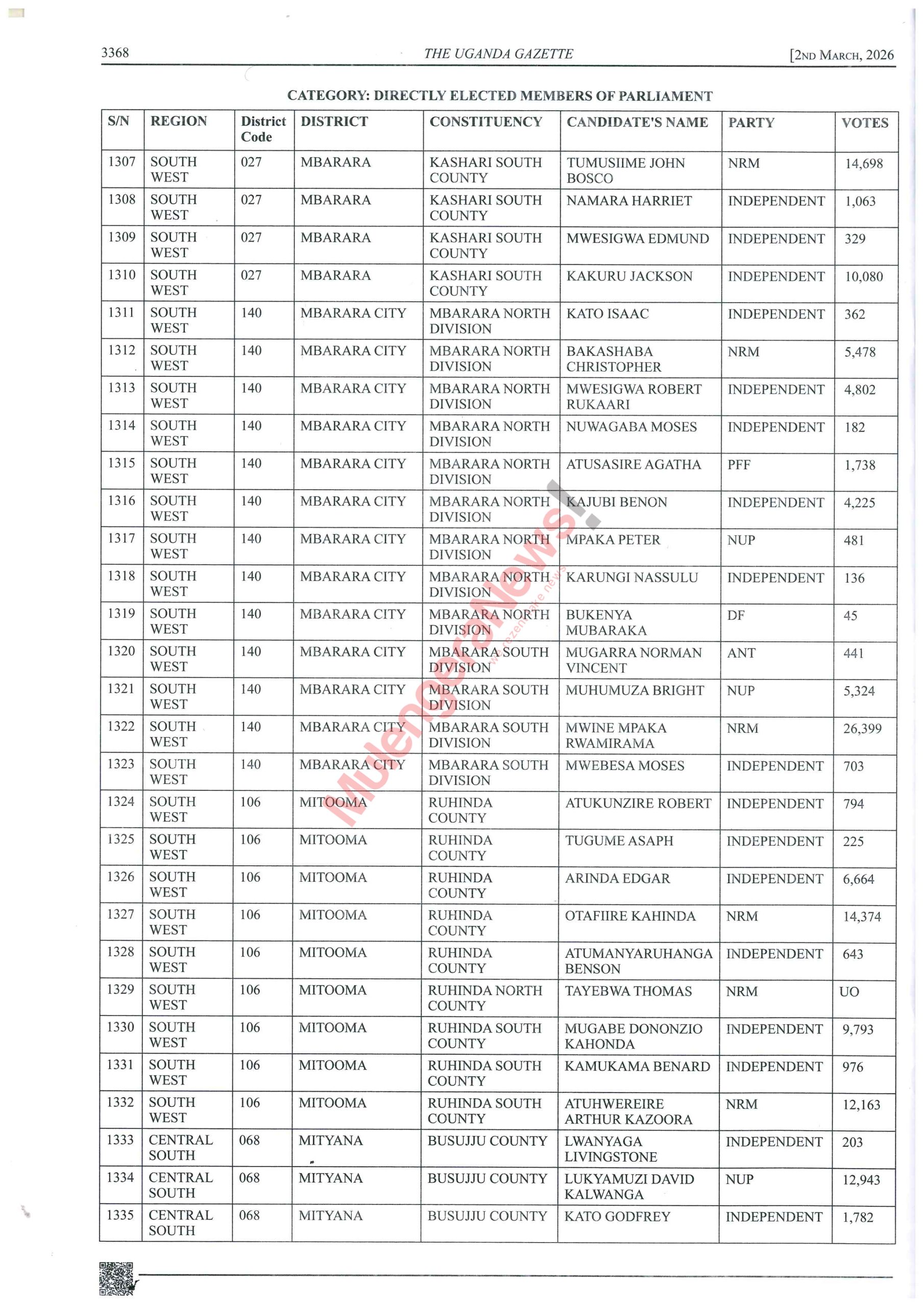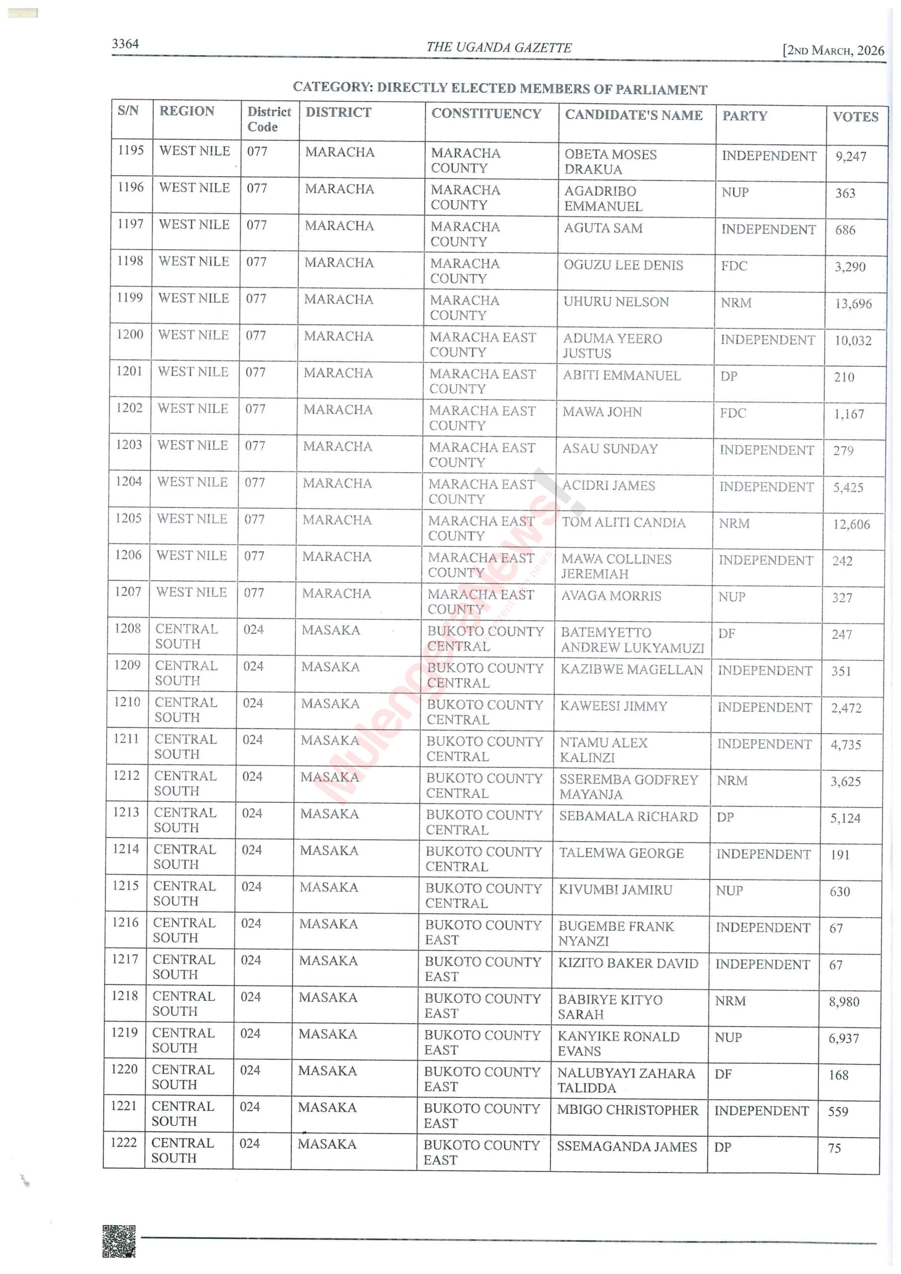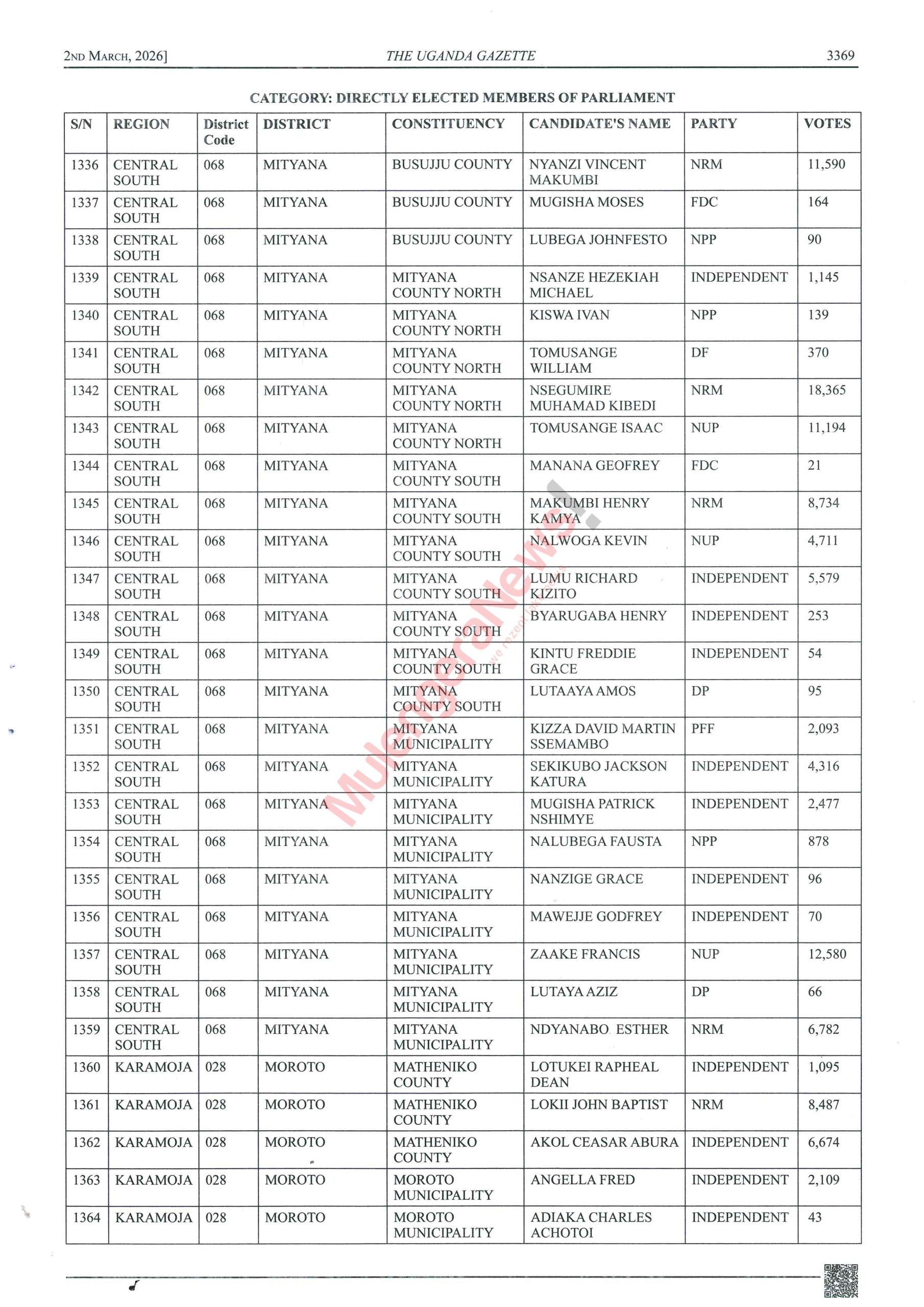 Let’s peruse the lists and know who won narrowly and those who lost narrowly. There are some contestants like Kalungu West’s Joseph Sewungu who won with a margin of as low as 26 votes. Equally true, there are candidates who lost and were beaten with a vote difference of as low as 10 votes. It hurts but it happens. Let’s acquaint ourselves with such details and much more by accessing the contents of the latest Gazette by perusing this story.