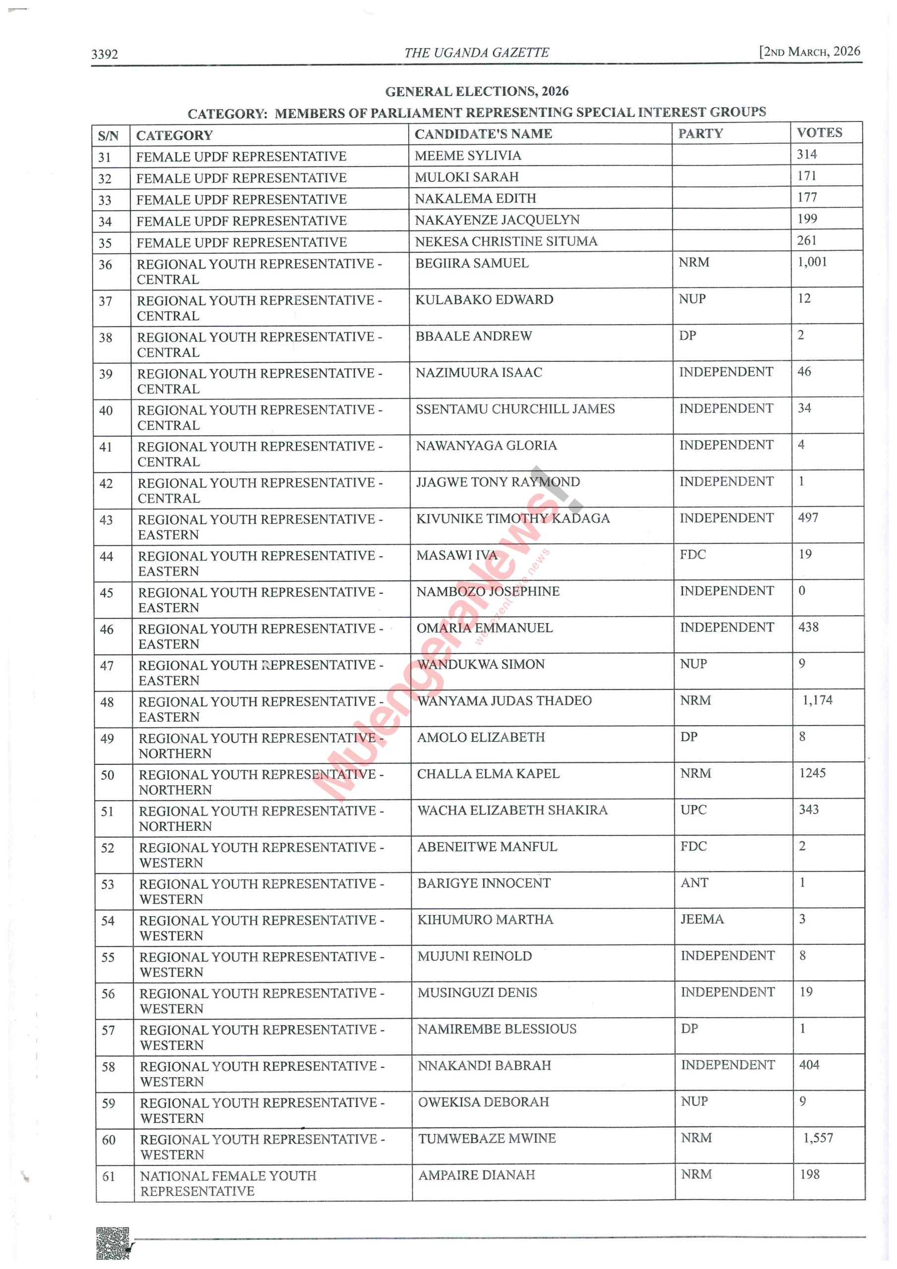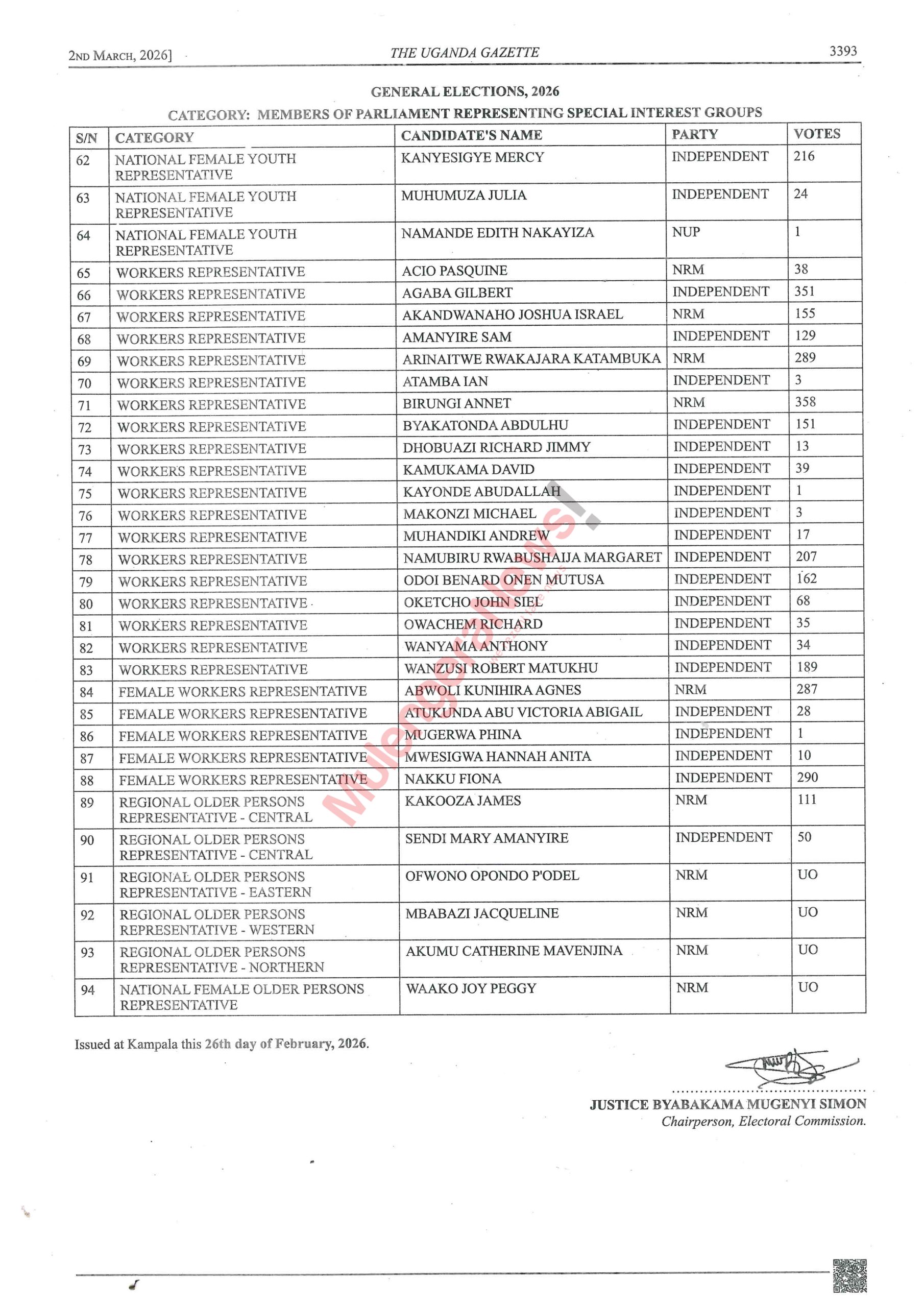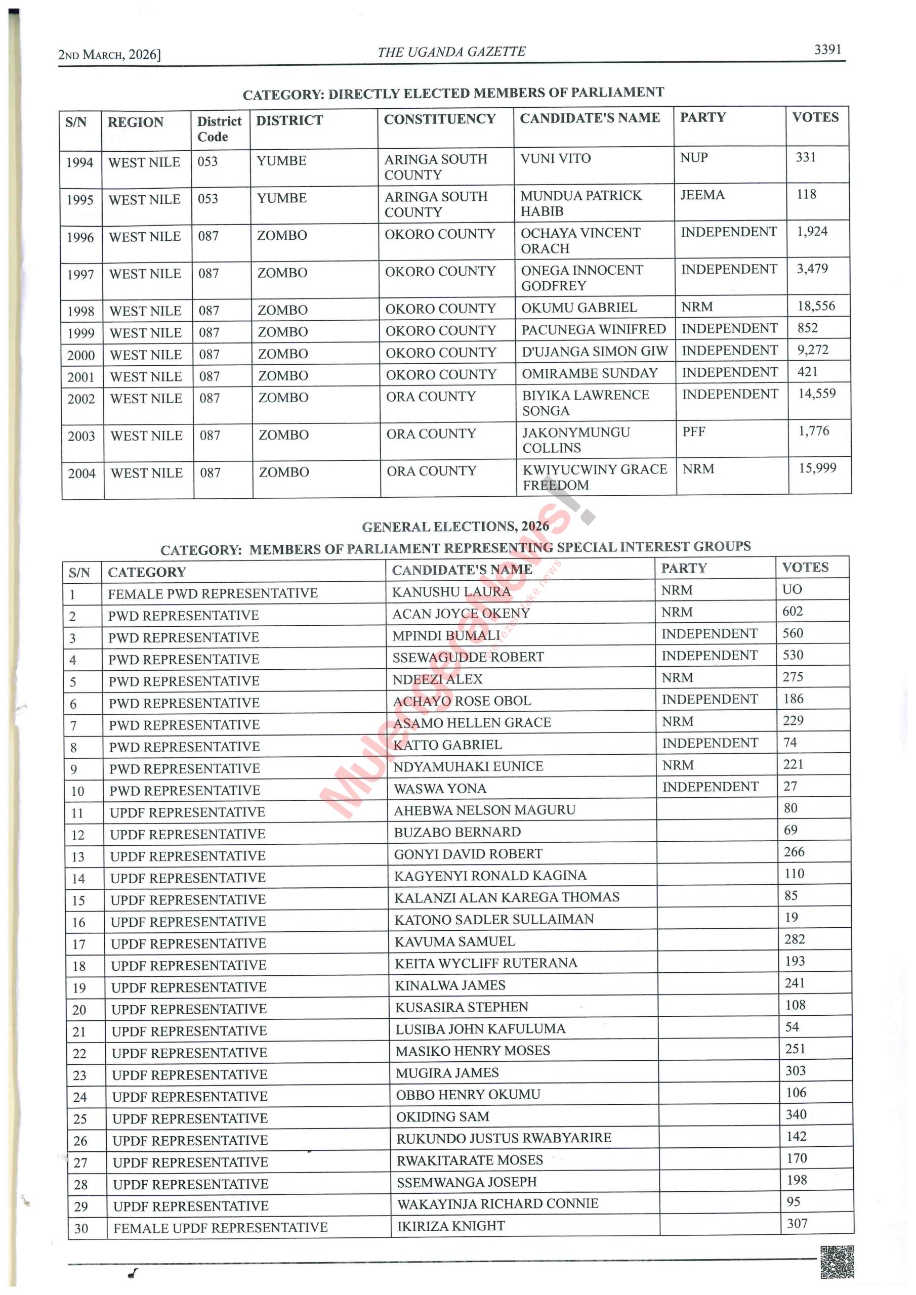 Let’s peruse the lists and know who won narrowly and those who lost narrowly. There are some contestants like Kalungu West’s Joseph Sewungu who won with a margin of as low as 26 votes. Equally true, there are candidates who lost and were beaten with a vote difference of as low as 10 votes. It hurts but it happens. Let’s acquaint ourselves with such details and much more by accessing the contents of the latest Gazette by perusing this story.