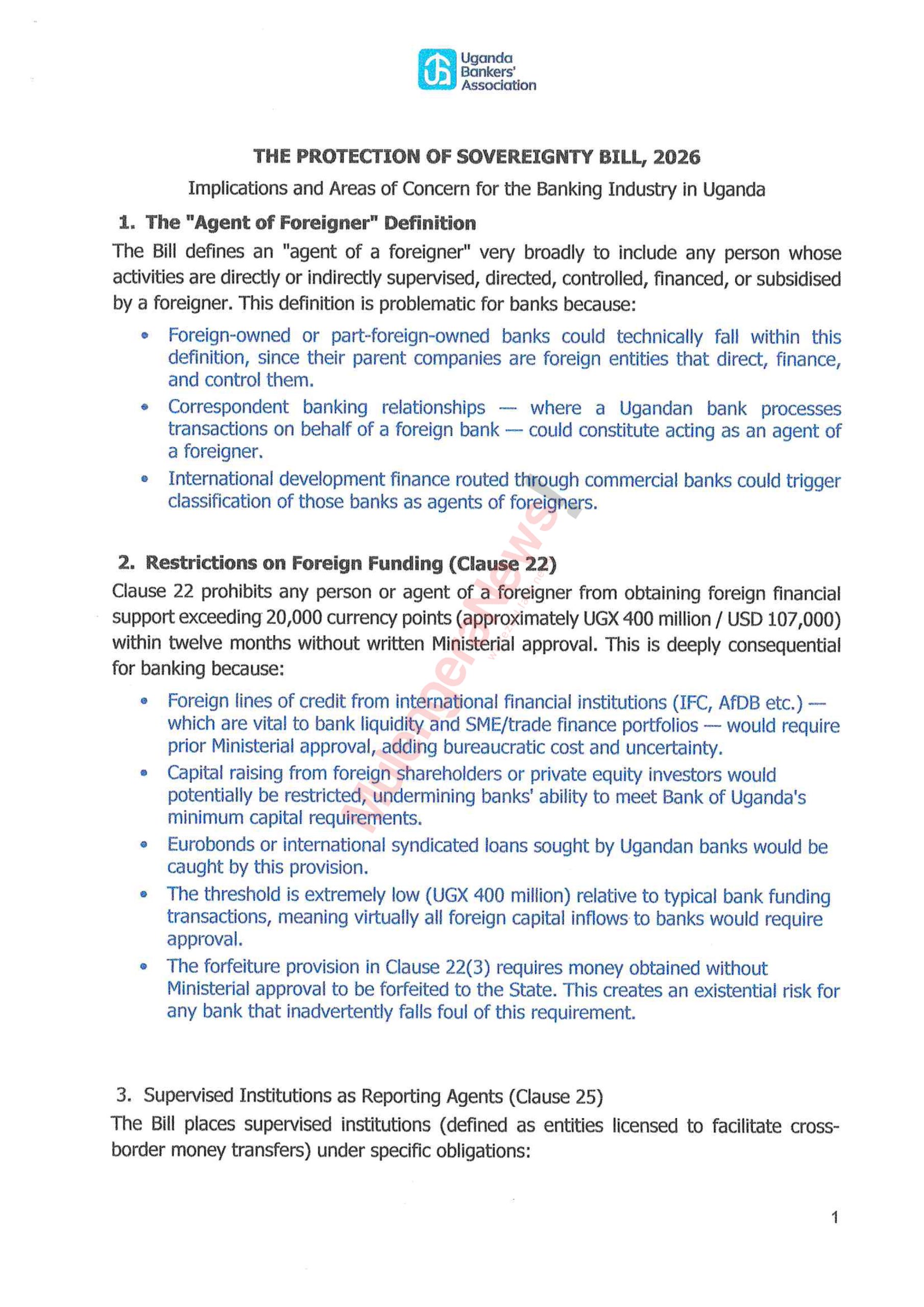 Uganda’s banking industry has issued a stark warning over the proposed Sovereignty Bill 2026, saying its current form could severely disrupt financial operations, scare off foreign investors, and undermine the country’s economic growth ambitions.