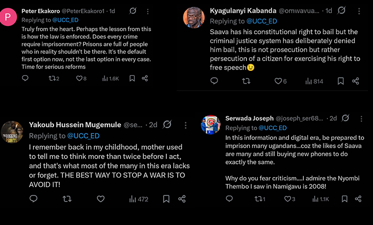 Whereas a few X users, led by lawyer Male Mabirizi, demonstrated their negativity while referencing to the Constitutional provisions and the Supreme Court decision in the Onyango-Obbo/Andrew Mwenda locus classicus case and concluding that Saava is innocent under free speech provisions, majority online commentators celebrated the courtesy, compassion and prudence with which Nyombi Thembo acted.