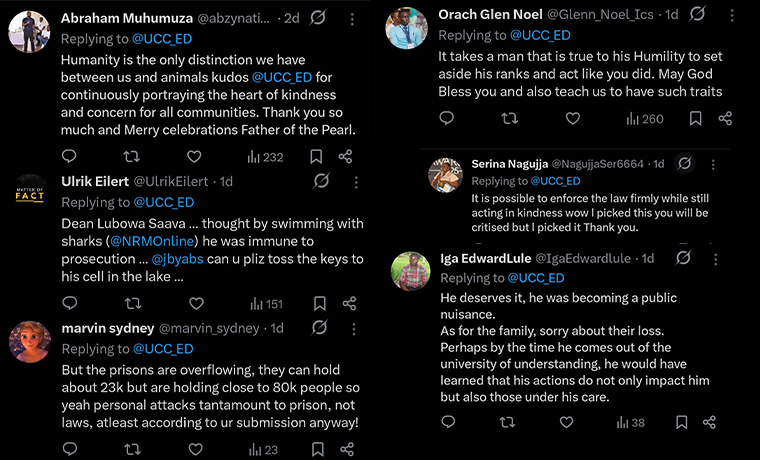 Another X user, Abraham Muhumuza, said the 23rd gesture demonstrated Nyombi Thembo’s humanity and that his kindness qualified him to be bestowed the title of “Father of the Pearl” for the Christmas season. Iga Edward Lule went radical asserting that Saava deserves jail because he went too far in his verbal attacks on people.