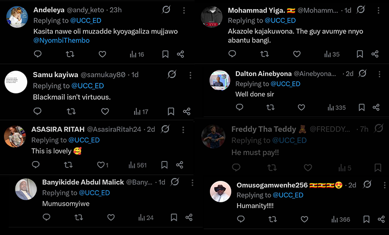 Uncle Sue, another X user, wondered why such good people, possessed with such kind-heartedness like Nyombi Thembo, are these days rare in the Ugandan government. ManUtdGuy agreed and demanded that other big people in government emulate Nyombi Thembo. God’s Plan said that what Nyombi Thembo had done is what they call UBUNTU, which he observed is very rare in today’s Uganda.