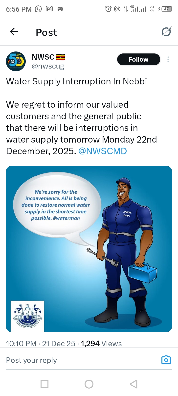 December has been a month of water challenges across Uganda, but the National Water and Sewerage Corporation (NWSC) has shown remarkable effort in keeping the public informed through its X handle (@NWSC). From Gulu to Nebbi, residents have relied on NWSC’s timely posts to navigate multiple water supply interruptions.