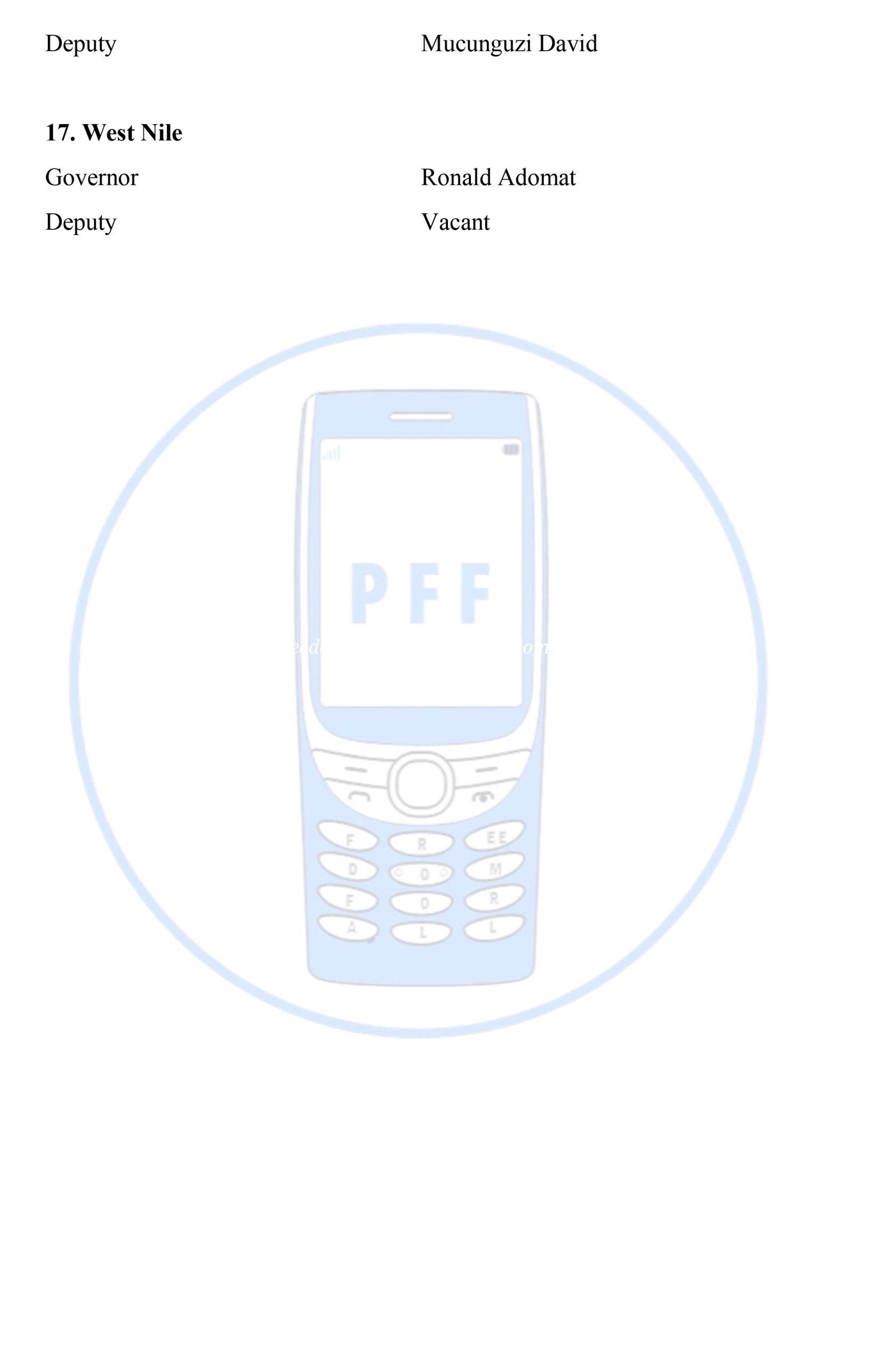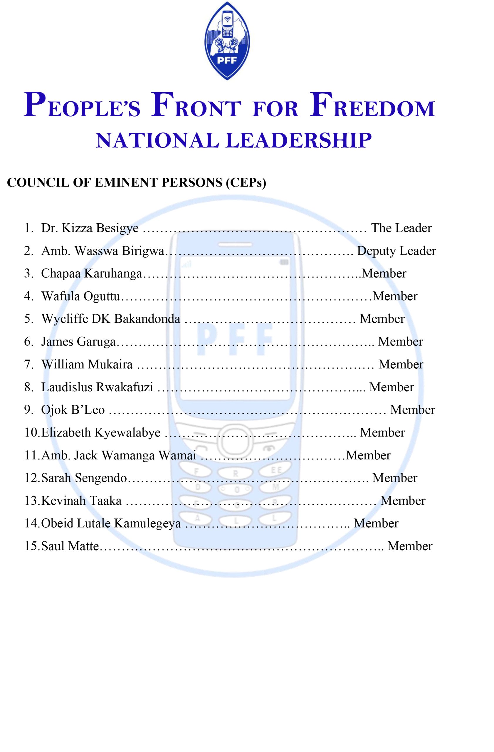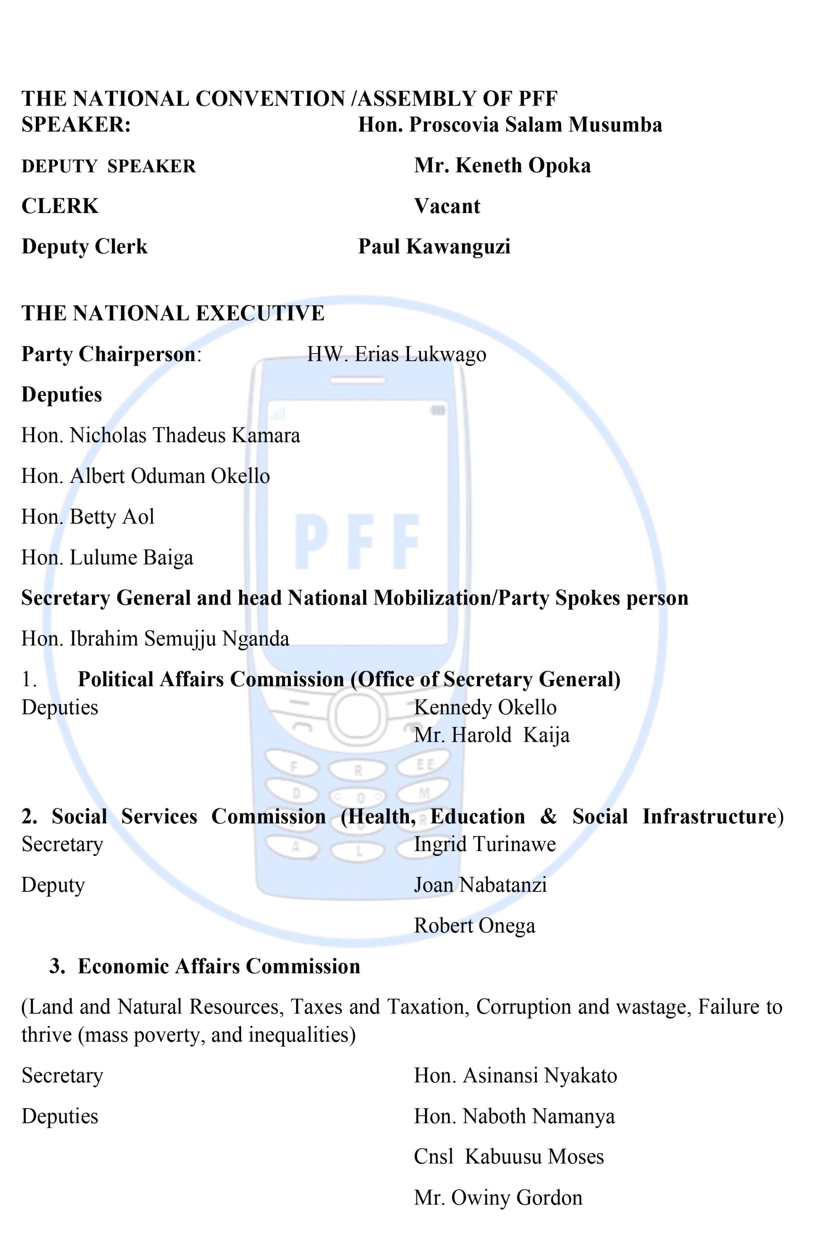 He will be deputized by Harold Kaija and Kennedy Okello, a Personal Assistant to the Lord Mayor. More can be seen from the attached list of PFF interim leadership: (For comments on this story, get back to us on 0705579994 [WhatsApp line], 0779411734 & 041 4674611 or email us at mulengeranews@gmail.com).