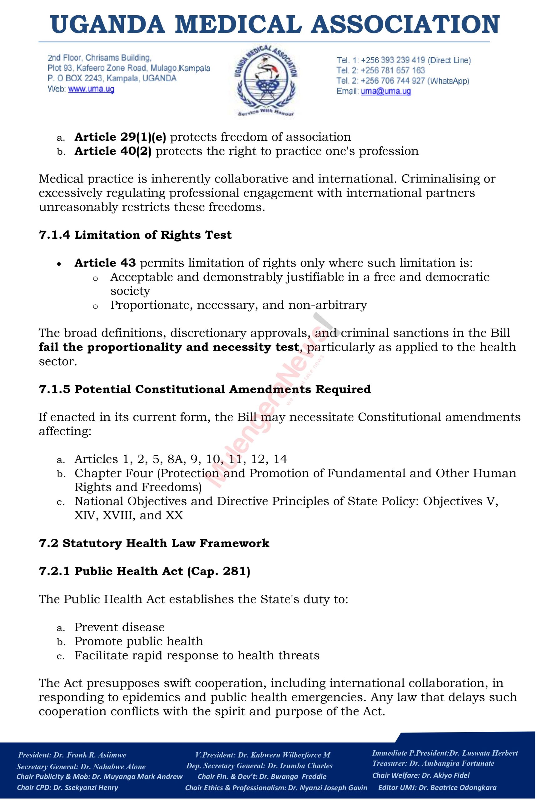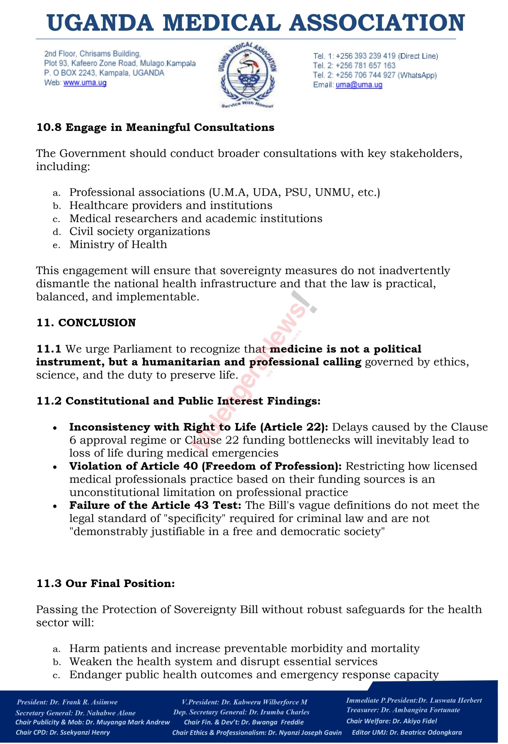 In its closing remarks, UMA stated that sovereignty is best protected by a healthy population and a strong healthcare system. It warned that weakening healthcare through restrictive laws could undermine the very national security the Bill seeks to protect.