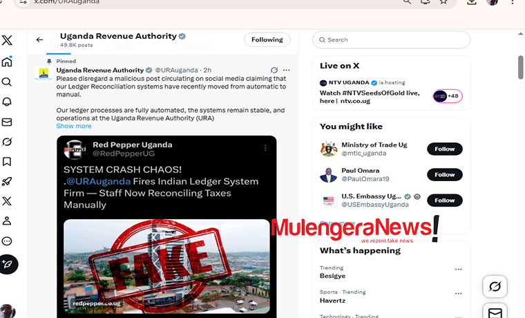 Through its official “X” page, URA urged the public to disregard the misleading Red Pepper article claiming that its sophisticated ledger reconciliation systems had been “switched off” and replaced by manual processes.