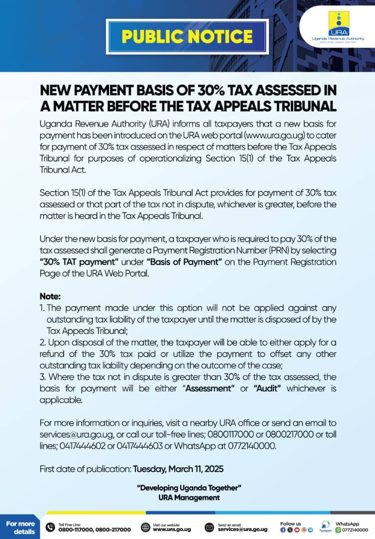 In a groundbreaking move to enhance tax compliance and streamline dispute resolution, the Uganda Revenue Authority (URA) has upgraded its web portal, introducing an effortless way for taxpayers to fulfill their 30% Tax Appeals Tribunal (TAT) payment obligations.