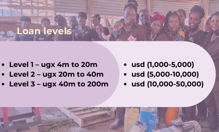 There are three levels of borrowing namely level one, which caters for female entrepreneurs eligible to borrow between Shs4m and Shs20m. There is also level two which caters for borrowers of Shs20-40m and finally level three, catering for borrowers of Shs40-200m.